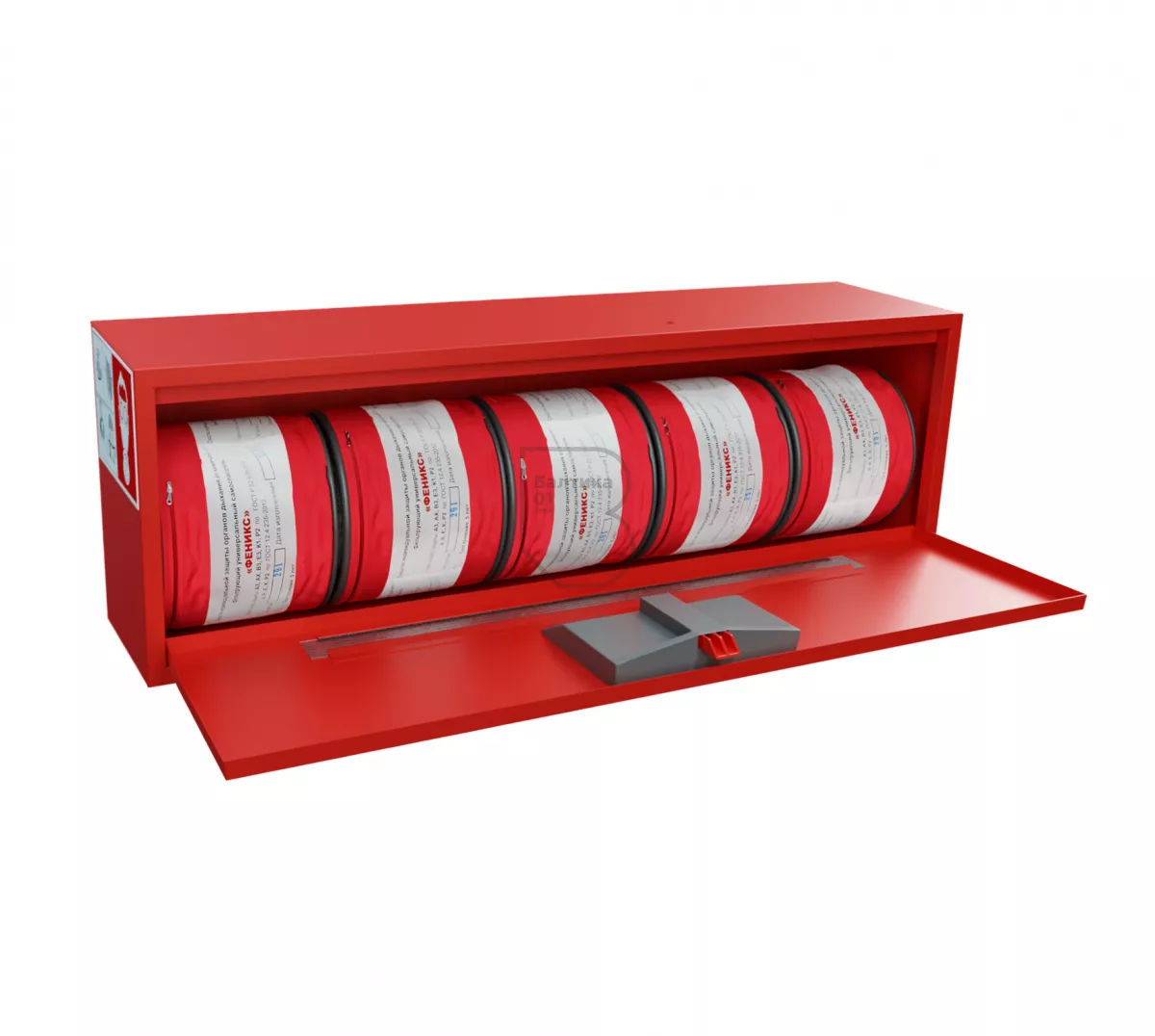Контейнер для самоспасателей Феникс-5 предназначен для удобства размещения, хранения и оперативной выдачи пяти защитных капюшонов Феникс.
