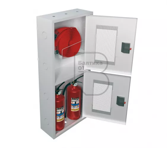Шкаф пожарный ШПК-320 НОБ – предназначен для размещения и хранения рукава пожарного в сборе, пожарного вентиля (клапана) и двух огнетушителей до 8 литров. Шкаф оборудован кассетой (турелью) для пожарного рукава.